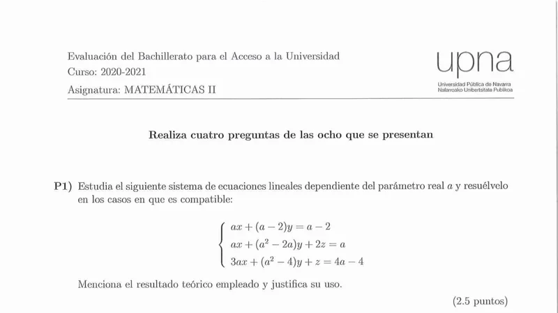 Reservar clase gratis →Examen de Matemáticas II selectividad Navarra (Extraordinaria 2021)