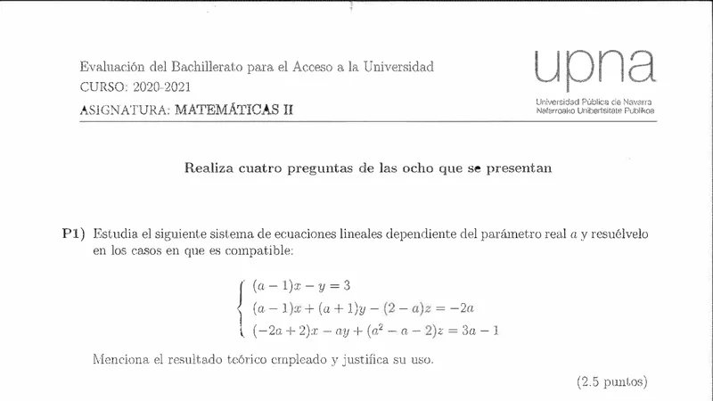 Reservar clase gratis →Examen de Matemáticas II selectividad Navarra (Ordinaria 2021)