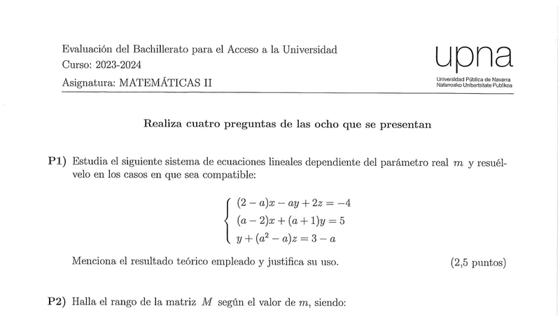 Reservar clase gratis →Examen de Matemáticas II selectividad Navarra (Ordinaria 2024)