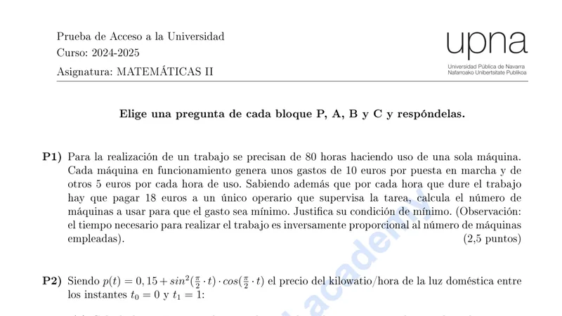 Reservar clase gratis →Examen de Matemáticas II selectividad Navarra (Ordinaria 2025)