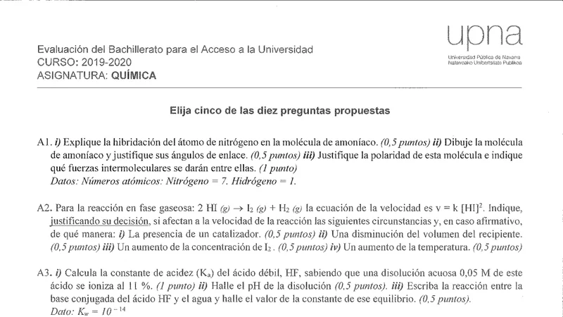 Reservar clase gratis →Examen de Química selectividad Navarra (Extraordinaria 2020)