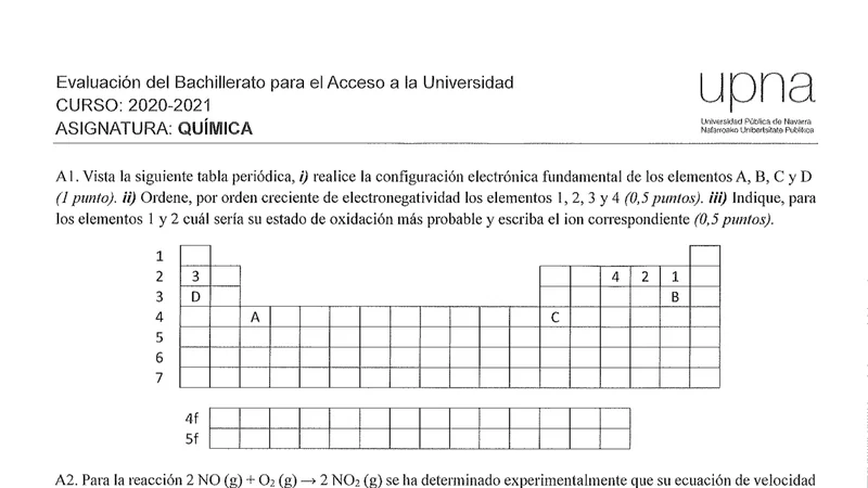 Examen PAU Química selectividad Navarra — Ordinaria 2021