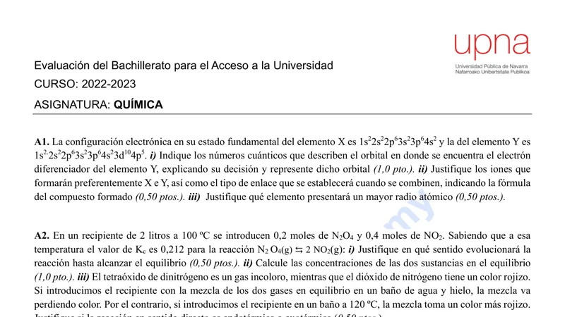 Reservar clase gratis →Examen de Química selectividad Navarra (Extraordinaria 2023)
