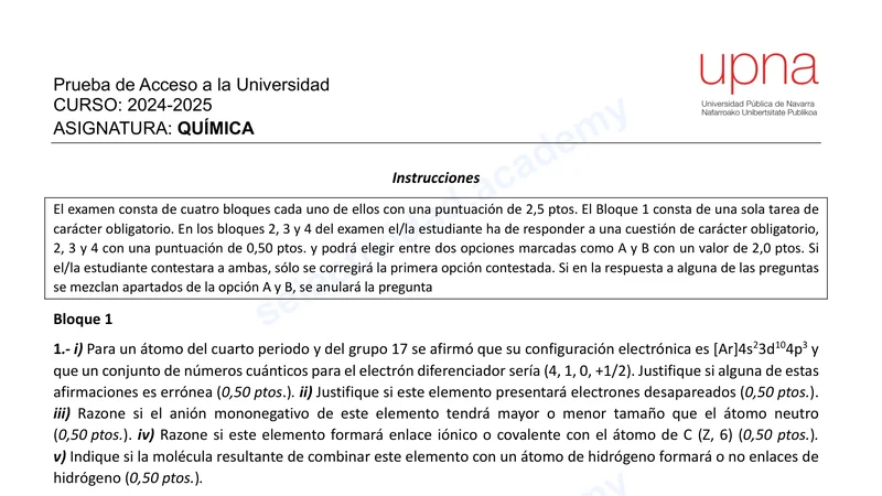 Reservar clase gratis →Examen de Química selectividad Navarra (Ordinaria 2025)