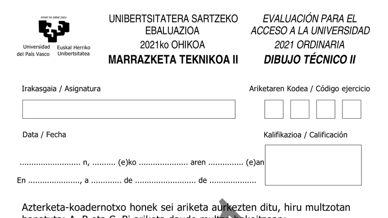 Examen de Dibujo Técnico II selectividad País Vasco — Ordinaria 2021