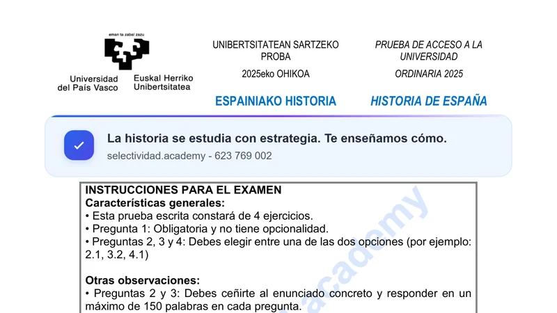 Reservar clase gratis →Examen de Historia de España selectividad País Vasco (Ordinaria 2025)
