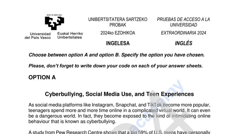 Examen PAU Inglés selectividad País Vasco — Extraordinaria 2024