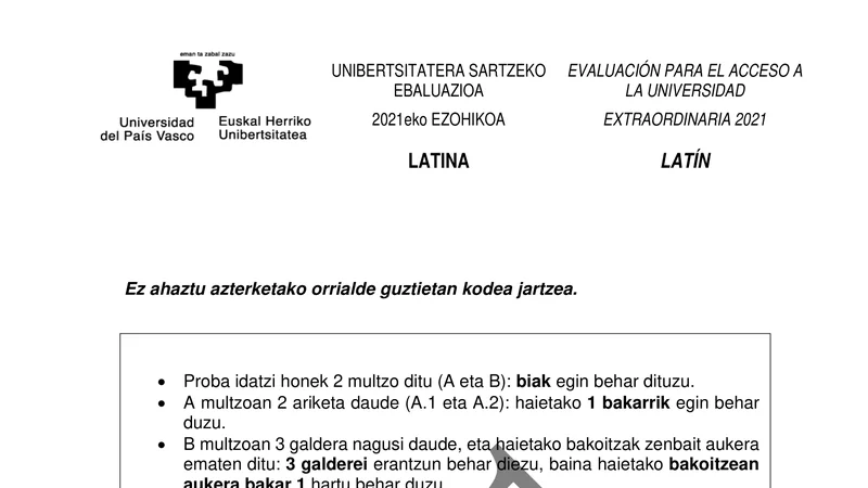 Examen PAU Latín II selectividad País Vasco — Extraordinaria 2021